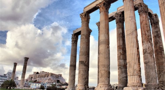 معبد زئوس المپیا به عنوان بزرگترین معبد یونان شناخته می شود. این بنای عظیم باستانی طی ۷ قرن ساخته و تکمیل شد. ساخت معبد حدود سال ۵۱۵ قبل از میلاد به دستور پیسیستراتوس شروع شد اما کار برای مدتی متوقف شد چراکه از نظر مردم آتن پیسیستراتوس و پسرش دیکتاتور بودند و ساخت معبد امری اجباری و ظالمانه بود. در سال ۱۷۵ قبل از میلاد ساخت معبد از سر گرفته شد اما باز ۱۰ سال بعد به دلیل فوت معمار رومی اش به نام کاسیوتیوس متوقف شد. طی دوران حکومت امپراطور هوردیان در سال ۱۳۲ قبل از میلاد بالاخره کار ساخت معبد به اتمام رسید و به پیشگاه زئوس المپیا تقدیم شد. امروزه معبد به عنوان یادگاری از تاریخ غنی یونان پا برجاست اما فقط ۱۵ ستون از ۱۰۴ ستون عظیم آن باقی مانده است. هر کدام از ستون ها ۱۷ متر ارتفاع دارند و زمانی در اطراف محراب معبد استوار بودند. در وسط محراب دو مجسمه بزرگ قرار داشته است.